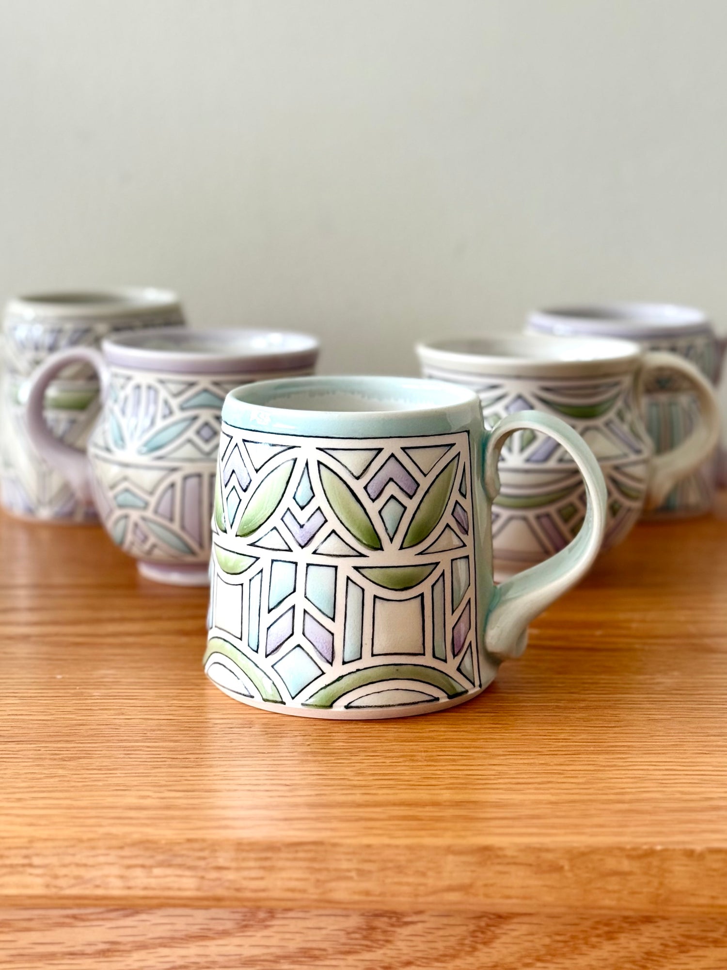 I create geometric Art Deco inspired pottery out of porcelain and stoneware.